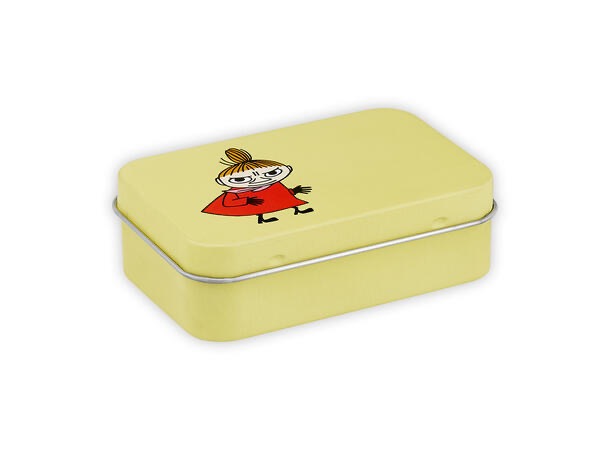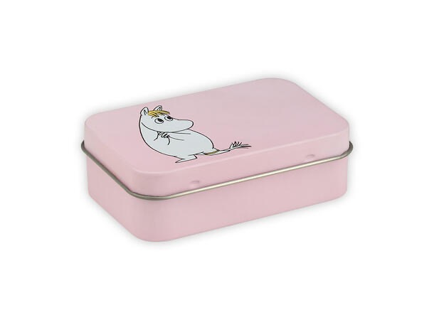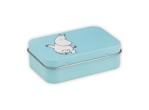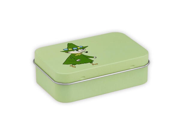 Kjekk liten oppbevaringsboks i tinn med karakterer fra Mummidalen.